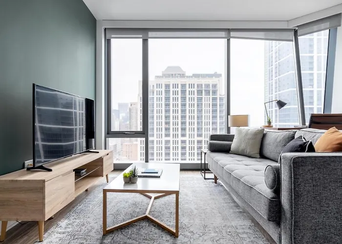 Die 1-Zimmer-Ferienwohnung S Loop 1Br W Pool Gym Nr Michigan Avenue Chi-84 im Viertel South Loop von Chicago bietet WLAN und Wellnessangebote wie eine Sauna. Der Flughafen Midway International liegt 15 km von diesem 70 m² großen Apartment entfernt, während die U-Bahn-Station Cermak-McCormick Place circa 15 Gehminuten von hier entfernt liegt.